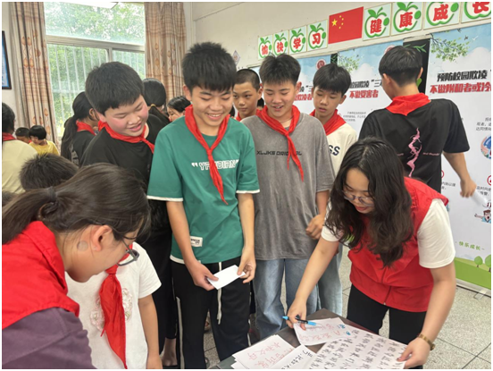 学校精心组织同学们有序参与活动,同学们在学生党员们耐心陪同、精心辅导下,全部完成了6个游戏通关并拿到小礼品,活动现场气氛愉快而热烈。有老师反馈到,我们的教育一直以老师说同学听的方式进行,而这次活动形式很新颖,非常受同学们欢迎,相信一定会加深同学们对校园欺凌的认识和理解。