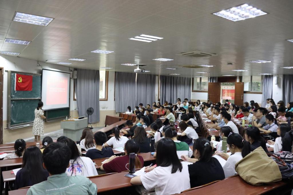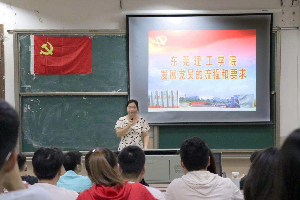 2021年11月4日,法律与社会工作学院(知识产权学院)分党校第三十三期入党培训班第三次党课于莞城校区的模拟法庭6#1开讲,法社学院学生第一党支部书记钟丽华应邀主讲主题为“发展党员的流程和要求”的党课,全体33期入党积极分子到堂听讲。
