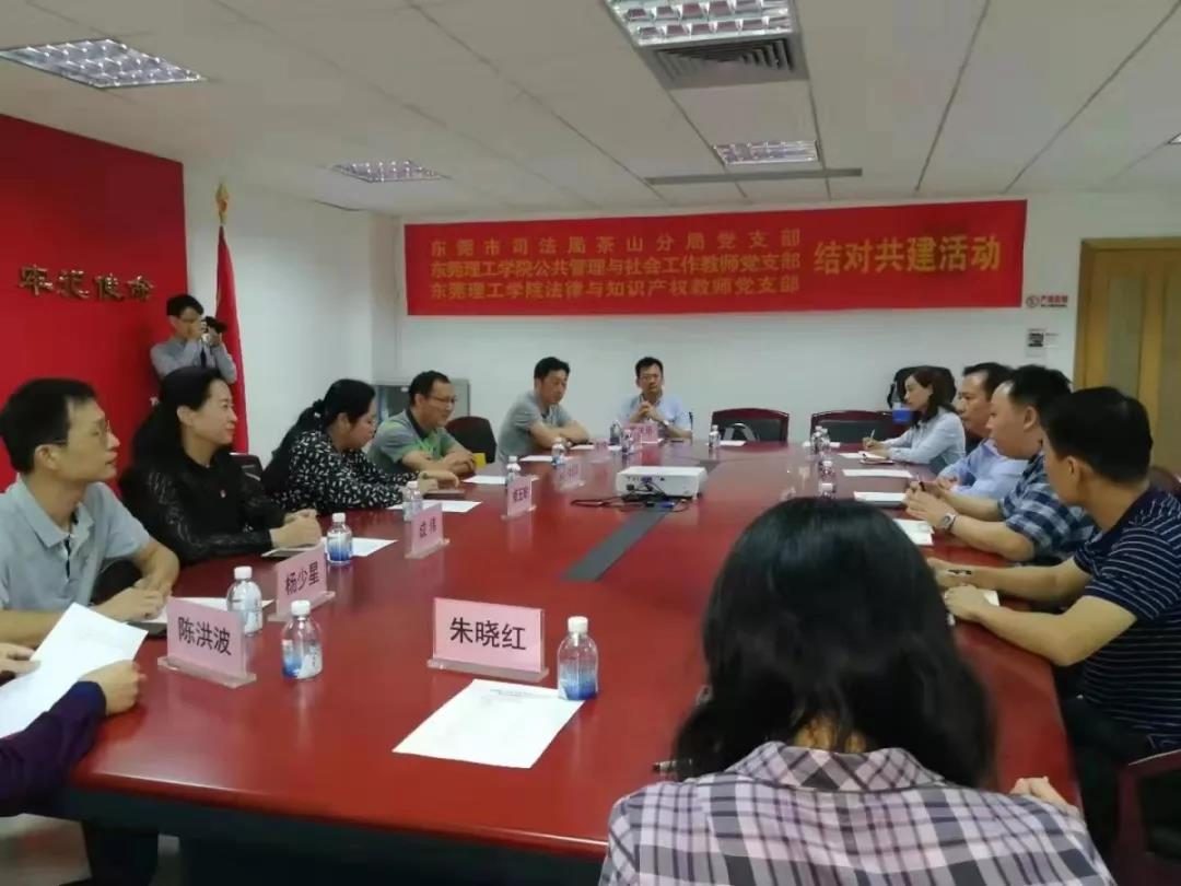 为实现党组织优势互补,加强基层党建工作,以党建工作凝聚人心,增强力量,实现政府部门、高校、社会的资源良性流通与转化,探索高校社会服务新路径,构建“资源共享、优势互补、互相促进、共同提高”的校地结对共建工作新格局。2019年11月18日下午,法社学院与东莞市司法局茶山分局开展“党建引领 结对共建”及实习生基地签约仪式。