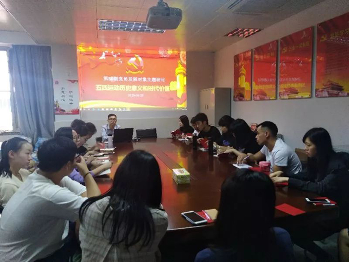 2019年4月28日下午14:20,法社学院专职组织员陈少典老师组织法社学院党员发展对象在莞城校区6403党员活动室进行了主题为“五四运动的历史意义和时代价值”研讨会。