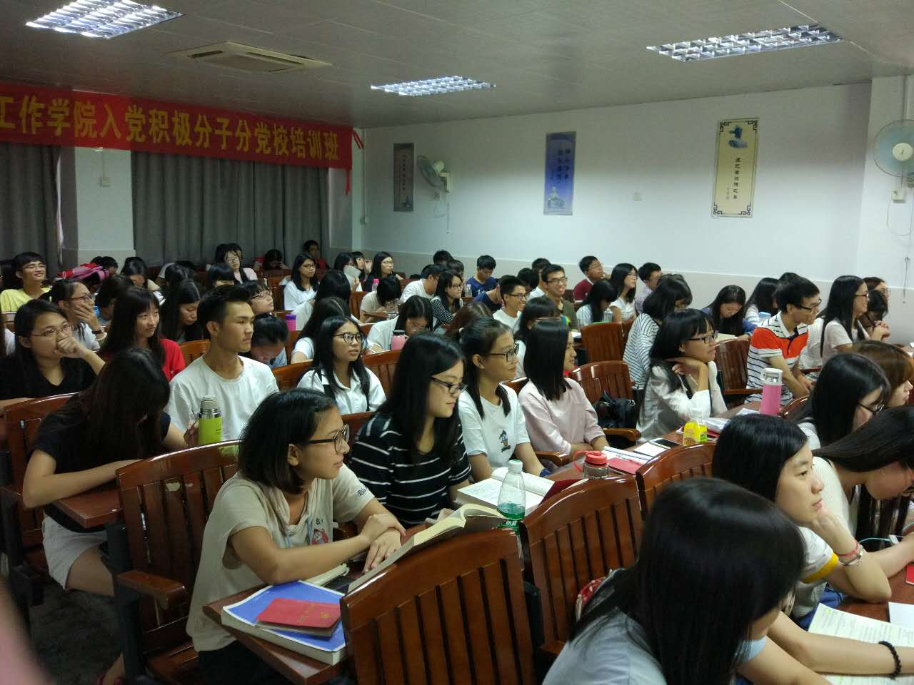 ,法律与社会工作学院第二十三期入党积极分子第一次培训课在莞城课室1409举行。本次培训课主讲人为潘荣新书记。应到积极分子98人,实到96人。
