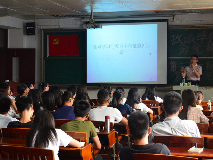 潘书记正在向积极分子介绍党章的各项条例以及常见的问题