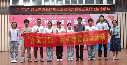 2022年6月24日上午,法社学院副院长朱晓红、谢媚媚老师、杨瀚博老师以及“青鸢计划”志愿服务队的学生十多人前往石龙镇兴龙社区参加“五社联动齐赋能,一起慈善创美好”——“1773”兴龙慈善社区项目启动仪式暨社区夏日送清凉活动。此次活动是法社学院2022年开展的“青鸢计划”劳动教育品牌活动的重要内容之一。