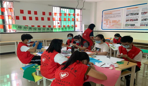 让“绿色、低碳、环保”的理念深入人心,帮助小朋友们树立环保意识和提高垃圾分类的能力,我校法社学院志愿服务站与东城街道堑头社区巾帼志愿服务队合作,组织成员于10月16日早上到东莞市东城街道堑头社区开展“‘我绘分类’垃圾分类宣传墙制作”的志愿服务活动。