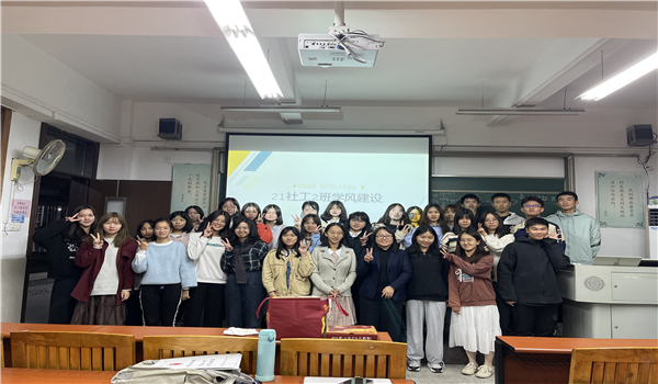 2021级社会工作2班在班委和班主任丁淑娟的组织下开展以“学风建设,学党史”的主题班会活动。在班会上,班主任丁老师就班级学风契约书的具体内容与大家商讨,最终协定出符合本班的科学的学风契约书。此外,同学们还以茶话会的形式与丁老师对近期的学习和生活进行交流。主要涉及同学们对大学四年的目标、大学与高中不同的学习方式、以及在大学提高素质和能力的重要性等问题。