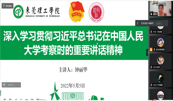 在五四青年节和中国共产主义青年团成立百年之际,法社学院团委、学生会于2022年5月5日召开春季培训工作会议,深入学习贯彻习近平总书记在中国人民大学考察时的重要讲话精神。本次学习会议的主讲老师是学院团委书记钟丽华。