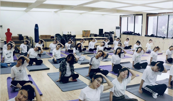 活动三,冥想训练。冥想是一种意念的运用方式,通过获得深度的宁静状态而增强自我认知和良好状态。活动现场,同学们盘坐在瑜伽垫上,下巴微收,眼睛轻闭,心跟随着深呼吸,自然而然地放松身体。伴随着轻柔的音乐,心也安静下来,跟着思绪走进了深谷花园,听林间鸟鸣啁啾,观山间泉水淙淙。感受微风拂过脸颊,享受阳光肆意洒下的温暖……虽然只有短短的四分钟的体验时间,但是大家感受到了内心的宁静。