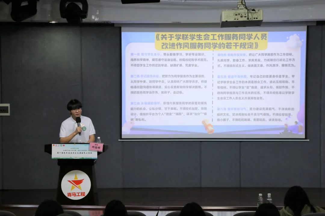为引领青年树立正确的世界观、人生观、价值观,进一步深化党的理论学习,厚植家国情怀,提高思想政治素质,加强实践锻炼。3月30日,法律与社会工作学院(知识产权学院)第一期“青马工程”培训班(以下简称青马班)邀请校学生会执行主席邓国辉学长为青马班全体学员开展“新时代青年的青春关键词”主题分享会,以此加强学生组织队伍建设,打造一批理想信念坚定、工作能力突出、综合素质过硬的学生骨干,进一步增强组织的凝聚力、战斗力。