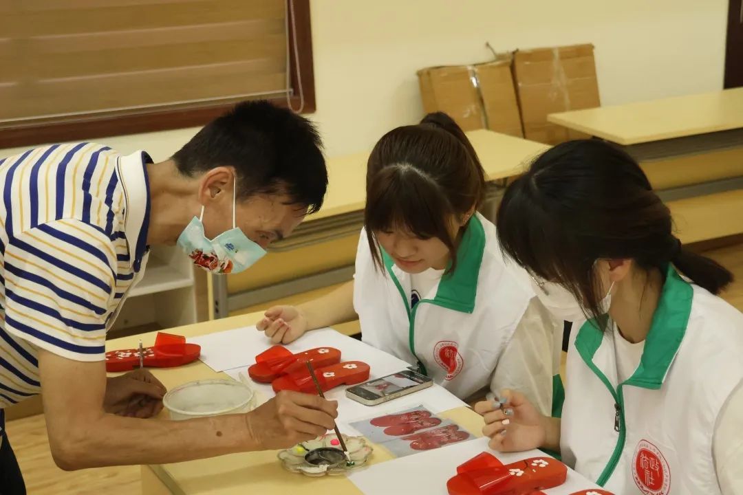 为传承中华优秀传统文化、品味非物质文化遗产的魅力,坚持文化润人,提高青年大学生文化素养,2023年5月18日下午2:30我院于莞城校区莞思活动室开展“体验红漆描花木屐,传播中华传统技艺”活动。此次活动特邀请东莞市非物质文化遗产项目代表性传承人梁锦泉老师现场指导同学们进行“红漆描花传统木屐制作技艺”体验活动。