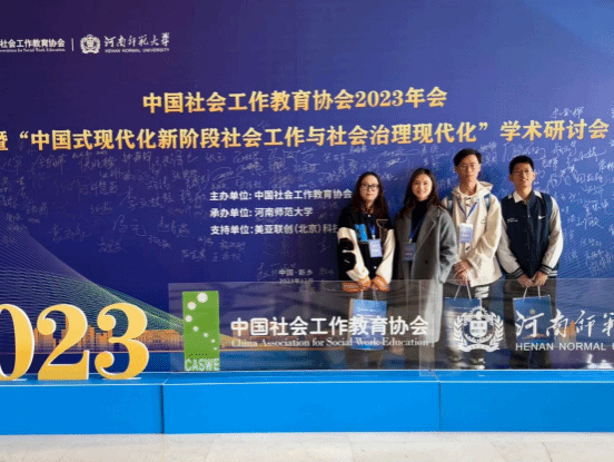 2023年12月8日—10日,中国社会工作教育协会2023年会暨“中国式现代化新阶段社会工作与社会治理现代化”学术研讨会在河南新乡成功举办。我院2023级社会工作专业硕士研究生张可、卢慧娴、杨顺、2021级本科生袁铸峰获邀参会。