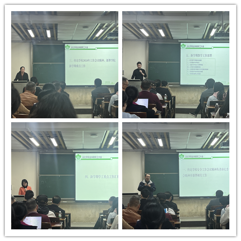 会上,学院党委书记杜应发传达了学校2024年学校安全工作会议精神及省市纪委全会精神,他指出,全体老师要深入学习贯彻习近平总书记重要讲话、重要指示精神和中央政治局会议精神,用习近平新时代中国特色社会主义思想凝心铸魂,坚定拥护“两个确立”、坚决做到“两个维护。要坚定理想信念,扎实推进习近平新时代中国特色社会主义思想进教材、进课堂、进头脑,做到上下贯通、落实落细。同时开展了师德师风教育警示教育活动,为全体老师宣讲《3044AM永利集团师德失范行为处理办法》。