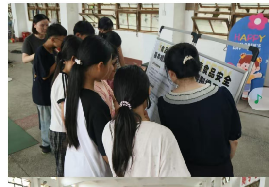 活动开展前,团队针对富美小学提出的需求,围绕食品安全常识、食品安全消费误区、食品安全问题维权等主要方面的知识,根据小学生年龄特点设计了“知识游戏化”形式和内容,以寓教于乐方式引导小朋友学习食品安全法律法规和食品安全小常识。活动旨在将复杂的食品安全知识转化为小朋友易于掌握的实用技能,进一步提升乡村儿童食品安全风险意识和实际鉴别能力,为乡村儿童健康成长保驾护航。活动由四个游戏环节组成,小朋友们在既紧张又快乐的氛围中,学会了如何成为“聪明小吃货”。如在“食品知识”环节,学习食品安全相关规条;在“零食智选”环节,学会判断食品成分是否健康;在“标签侦探”环节,学会辨识有效期;在“怎么做”环节,学会场景应对。活动现场还放置了食品安全法律法规和食品安全小常识展板。