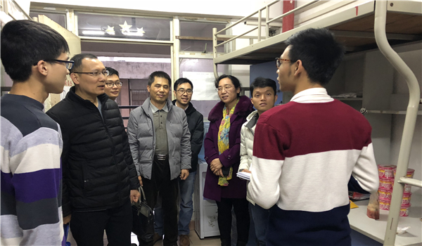 2月24日下午,在新学期来临之际,为了解同学们的返校情况,我院党总支书记杜应发,副院长朱晓红,副书记丘永辉,组织员陈少典老师,全体辅导员在助班和团学干部的陪同下,深入我院学生宿舍,开展新学期走访宿舍的工作。