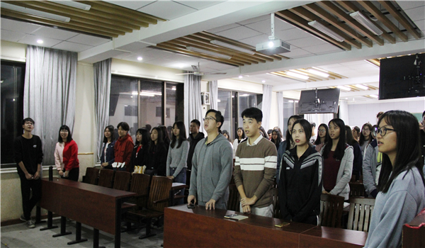 11月25日19时30分,第十九届团总支第二次全体例会在莞城校区教学楼5301课室举行。法律与社会工作学院团总支常务副书记胡裕荣,秘书长刘银禧、第二副书记方志鑫和各部门部长干事参加了此次会议。法宣干事张学凡和王丽诗担任本次例会的主持人。