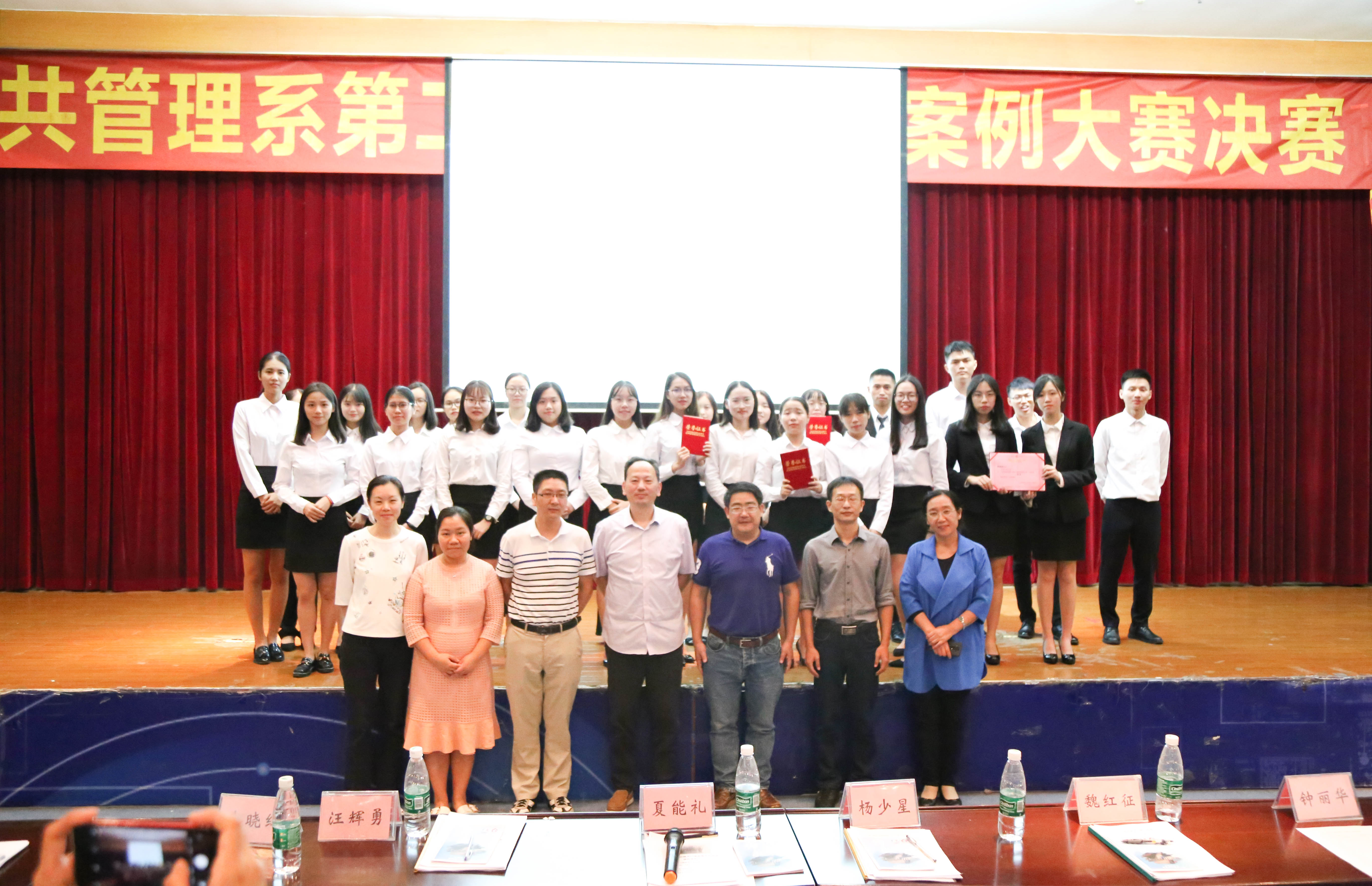 10月30日晚,法律与社会工作学院第二届公共管理案例大赛决赛在莞城校区学术报告厅举行。出席本次比赛的评委及嘉宾为:副院长夏能礼老师,公共管理系主任杨少星老师,公共管理系副主任魏红征老师,公共管理系教师代表汪辉勇老师、朱晓红老师、张麟老师,学工办主任钟丽华老师等。