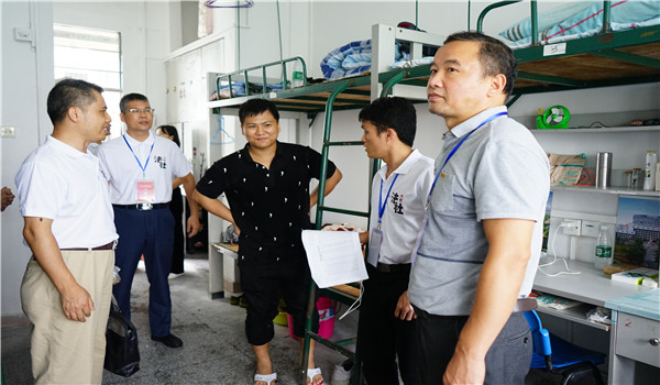 我院强昌文院长,潘荣新书记,夏能礼副院长,丘永辉副书记在辅导员老师及助班的陪同下到学生宿舍进行了走访,看望新生。老师们代表学院对新同学的到来表示热烈的欢迎,并热切地询问新生是否适应新学校的生活,关心新生们的状况,希望新生们尽快适应大学生活,融入新环境,热情的话语与亲切的问候令新生感受到了家的温暖与关爱。