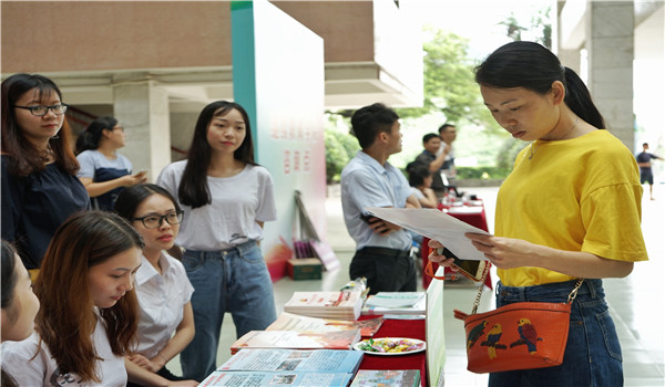早上9时许,学院咨询点吸引了众多的考生和家长前来咨询。学院的老师和工作人员耐心为他们介绍了学院内法律系、公共管理系、社会工作系的专业情况、人才培养目标、往年的报考录取情况,同时还向考生和家长介绍了学院丰富的第二课堂活动,让高考生和家长更加全面的了解学院的办学理念和办学特色。