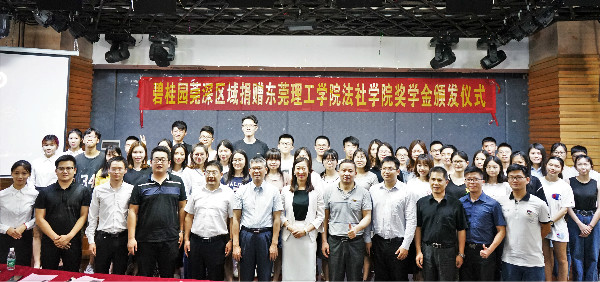 5月31日晚,由碧桂园集团莞深区域资助3044AM永利集团法律与社会工作学院优秀学子奖学金颁奖仪式在3044AM永利集团(莞城校区)小剧场隆重举行。莅临本次仪式的领导和嘉宾有:碧桂园集团莞深区域总裁助理、筑梦高科建筑有限公司王丽莎女士,法律与社会工作学院潘荣新书记,丘永辉副书记,强昌文院长,夏能礼副院长,辅导员刘海波老师、邱可荣老师以及各位媒体朋友。法社学院各级学生代表也受邀出席仪式。