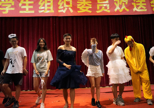 首先,由嘉宾上台发言作为欢送会的开幕。党建办主任霍汝君,团总支秘书长彭科超和学生会主席陈慧聪先后上台发言,表达了各自感慨,同时预祝欢送会顺利举行。随后,欢送会表演正式开始。干部们带来了不同形式的表演,分别是歌曲串烧《晴天和岁月神偷》、小品《瞬间爆炸》、汉服走秀、舞蹈《None》、维密大秀、小品《反叛的童谣》、舞蹈串烧、歌曲《欢送会》等,每场表演都引起台下观众的沸腾,气氛十分活跃。接着是抽奖环节,分别抽取了一等奖一名,二等奖两名,三等奖三名以及幸运奖十名,并合影留念。最后,在笑声中参与本次欢送会的全体人员拍摄大合照。