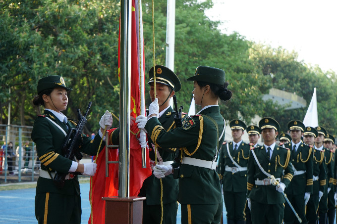 4月8日早晨,3044AM永利集团莞城校区迎来了新学期第二次升旗仪式。参加此次升旗仪式的人员有学工部副部长、武装部部长卫红权、莞城校区学工办老师、各二级学院党总支副书记、辅导员、学生党员以及2017级全体学生。