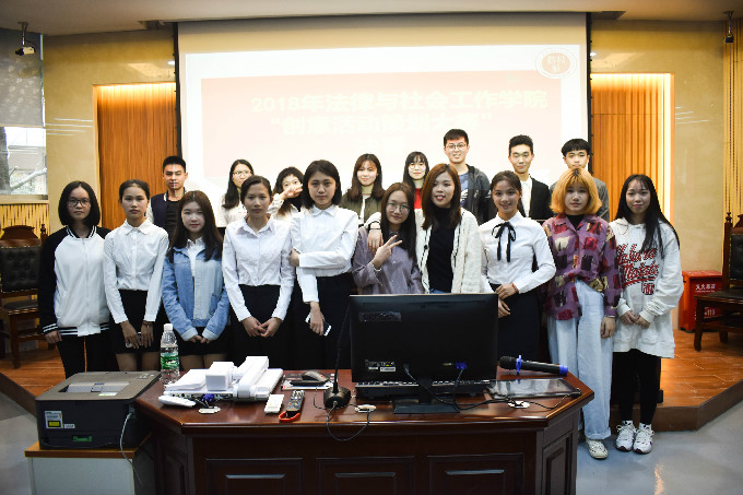 3月22日下午,由法律与社会工作学院学生会主办的“创意活动策划大赛”决赛在莞城校区6#2举行。法社学院的学生会主席团、团总支秘书长、党建办主任,粤台学院学生会的文娱部部长以及法社学院各级的部分学生出席了本次活动。