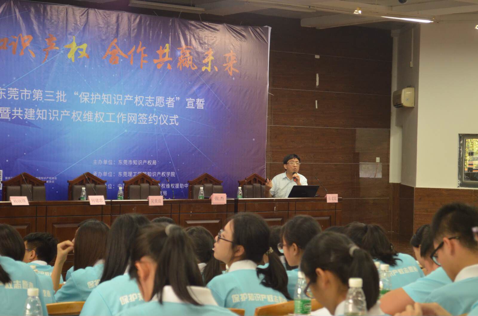 10月26日,由东莞市知识产权局主办、法社学院具体承办的2017年东莞市第三批“保护知识产权志愿者宣誓”暨共建维权工作网签约仪式活动在我校松山湖校区模拟法庭成功举办。