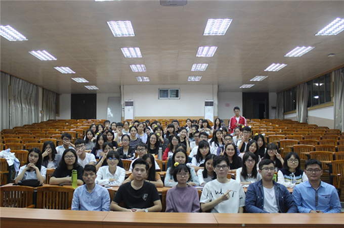 在志愿站干事的主持开场下,全体成员观看了党的十九大的相关视频。随后,辅导员邱可荣上台讲话,强调责任、服务、主动的重要性,为团总支的发展指明方向。紧接着,各部门部长上台表述了自己对干事们未来工作的展望,作为部门代表的小干事们也畅谈了自身的感受及期待。然后,便迎来了神圣的干事宣誓仪式,让新干事有了很真实的感触。终于激动人心的游戏环节来了。“真假难辨”猜芥末饼干、“屁股写字”考验着成员们的默契,吹面粉找乒乓球的惩罚环节也是引得全场笑声不断。在这之后,常务副书记张喜劲进行会议总结,希望大家对工作认真负责,真正融入团总支大家庭。