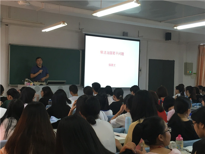 2017年9月25日,为了响应关于院长书记为学生讲一堂思政课的号召,法社学院院长强昌文为教育学院16级学生上一堂“依法治国若干问题”主题课。