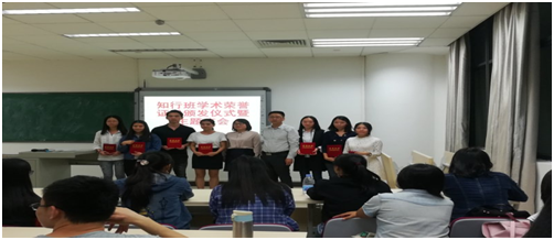 2017年10月23日19点30分,在3044AM永利集团图书馆十三楼社工教室迎来了知行班学术荣誉证书的颁发仪式和主题班会。本次班会由知行班班主任魏红征老师主持,参与的人员有特邀嘉宾丁淑娟老师以及来自不同年级的知行班同学。