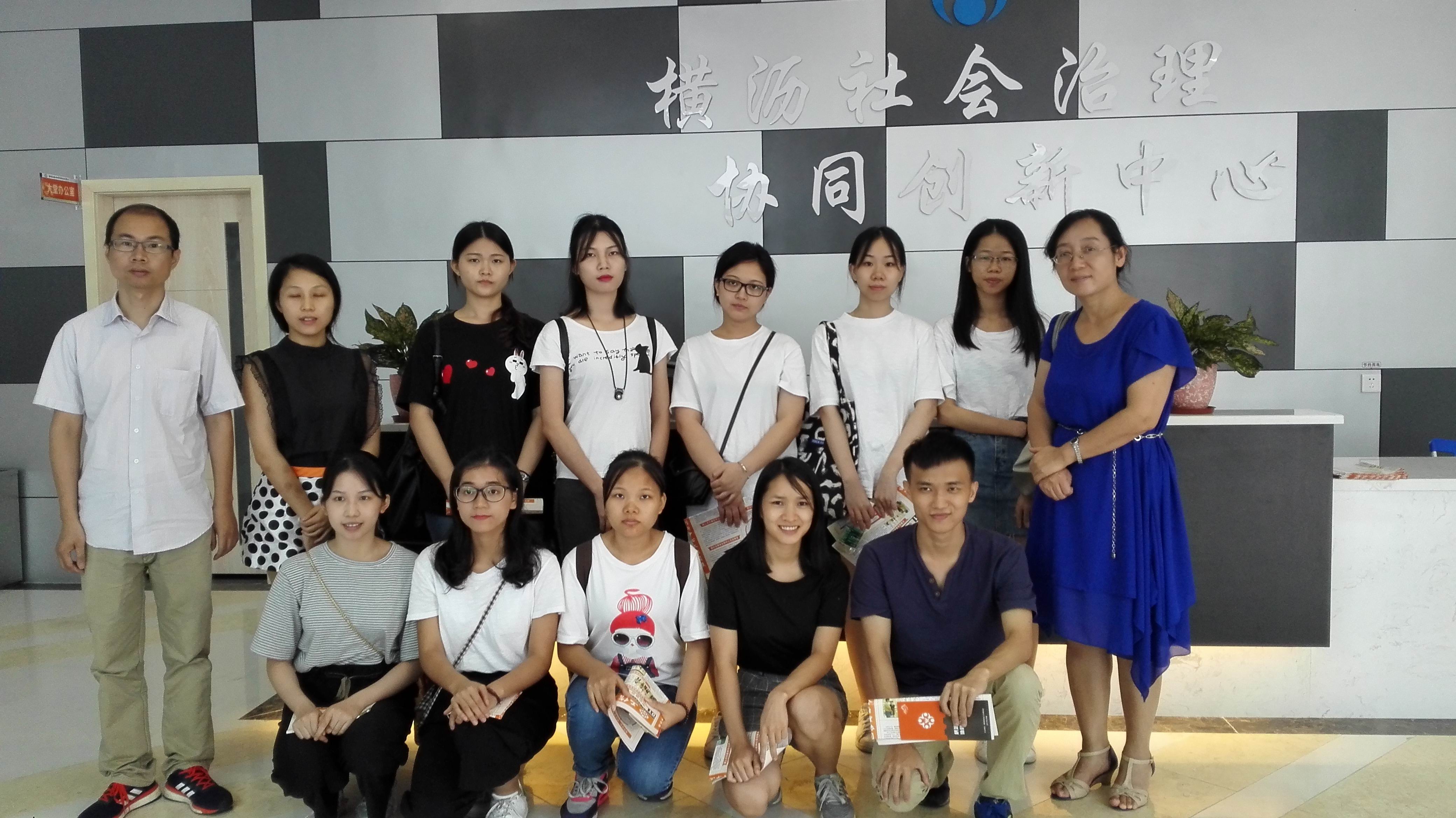 为强化校地合作,助力即将进入大四学生充分了解、认知社会,提升职场竞争力,2017年7月12日,法社学院公共管理系2014级行政管理专业7名学生与社会工作系3名学生在朱晓红老师、陈洪波老师和李璐璐老师的带领下赴横沥镇开展首次暑期集中实习。