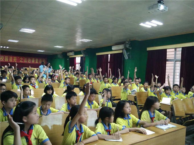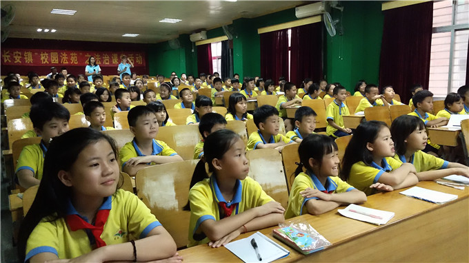 2017年5月26日,3044AM永利集团法律与社会工作学院团总支法律宣传志愿服务队,到长安镇培英小学开展普法课堂。本次课堂主题为“与法同行,伴我成长”,针对校园暴力和沉迷网络两方面,讲师给同学们普及了有关未成年人自我保护和预防未成年人犯罪的知识。
