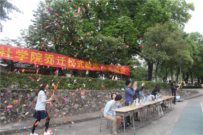 为庆祝学院乔迁至莞城校区,3月30日下午,法社学院在莞城校区大礼堂前篮球场举行趣味运动会开幕仪式。学院党总支书记潘荣新老师、班级班主任、学院辅导员老师以及法社学院学生参加了本次趣味运动会开幕仪式。