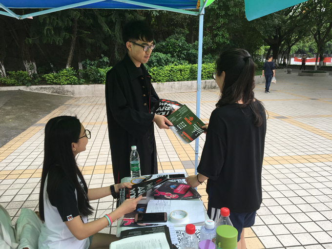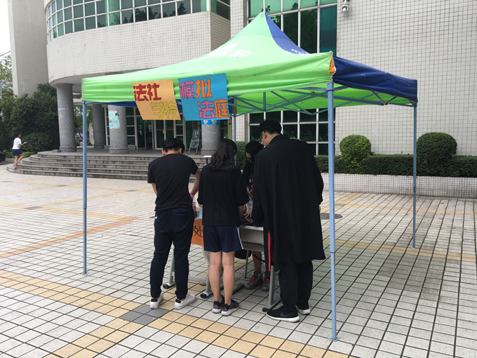 4月10日下午,法律与社会工作学院学生会为开展莞工第十二届科技学术节之模拟法庭活动,在莞城校区一饭前和图书馆篮球场前进行了摆摊宣传活动。