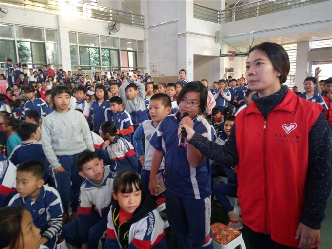 在人偶剧结束后,我们进行了提问环节,同学们踊跃地举手回答问题,回答问题正确的小朋友更是得到了精美的礼物,现在气氛热烈,同学们都开怀大笑。在活动的最后,我们与第一小学的一年级学生合影留念。