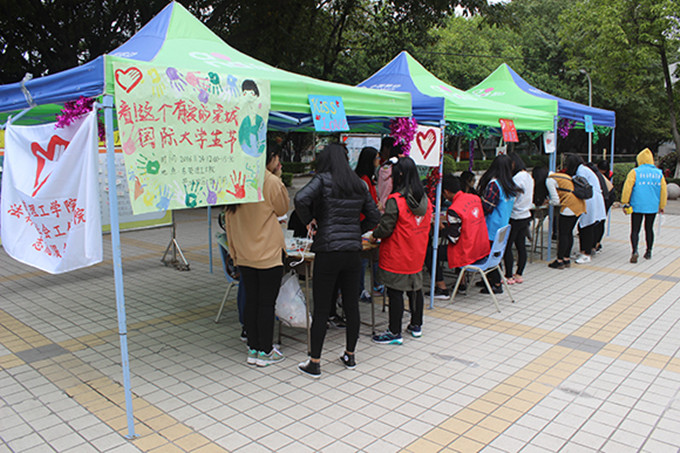 11月24日中午,法律与社会工作学院志愿服务站,为了纪念反法西斯大学生运动,发扬“和平、民主和自由”的精神,丰富大学生活,举办的“看!这个有爱的莞城”国际大学生节活动在3044AM永利集团莞城校区第一饭堂门前拉开帷幕。