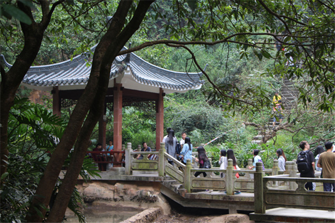 活动过程中,同学们与台阶、滑坡“斗智斗勇”,不惧陡峭的坡度和烈日的炙烤,在副团支书张峰同学的带领下沿着流淌的泉水走,顺利登顶水濂山。在山间拐角处,由于落差比较大,几个男生主动上前扶着女生上台阶,避免体力不支的同学踏空或跌倒,为大队伍“断后”。爬山过程中发现有个别同学出现身体不适的情况,跟不上大部队时,其他同学主动上前伸出援手,提供力所能及的帮助,尽显团队精神,达到了此次团日活动所期待的效果。