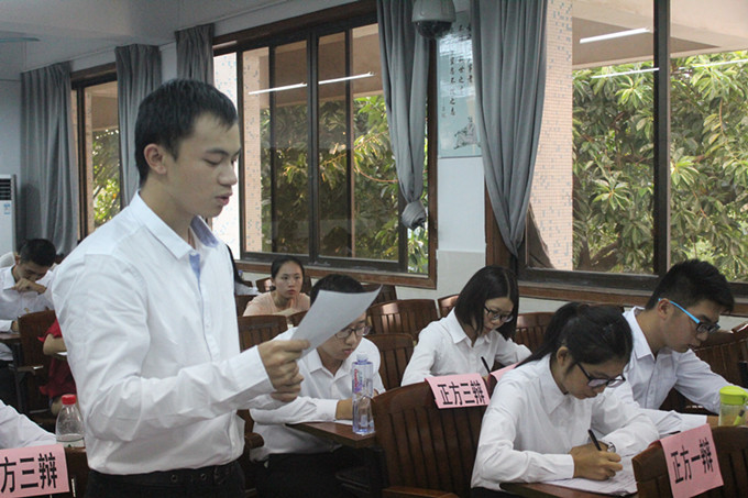 10月28日下午及晚上,法社学院在3309教室开展了新一轮的小组辩论赛,双方辩手都各展风采施展辩才,围绕着大学生支教的利弊关系展开辩论。法社学院辩论队谭乐、黄鑫杰、张婷婷、陈卓翰、李敏慧、雷蕾、池翔、郭为作为评委参与本次比赛。