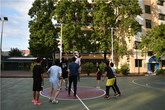 球赛开始之前,同学们就已经跃跃欲试,积极做好热身准备。16点50分球赛准时开始,学生先行上篮得分。随后双方都不敢轻敌,比赛很快就到了白热化的阶段。球场上,观众的加油欢呼的声音,篮球落地的声音,师生奔跑踏地的声音此起彼伏。最后师生双方的比分为81:68,老师们赢得了这一场比赛。