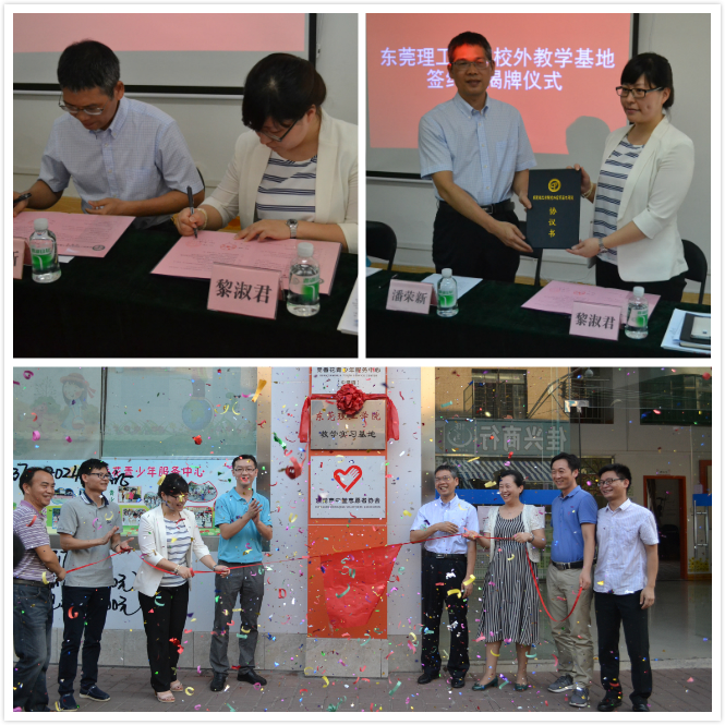 中堂镇党委委员,企业工委、社党工委书记张应钦,政法学院党总支书记、社工专业教师代表、辅导员,中堂镇团委干部等共同见证了协议书的签订。双方代表还共同为该实习基地揭牌。该实习基地的建设,实现政府机关、学校、学生三者的共赢。至此,政法学院的实习基地已经增加到28个。