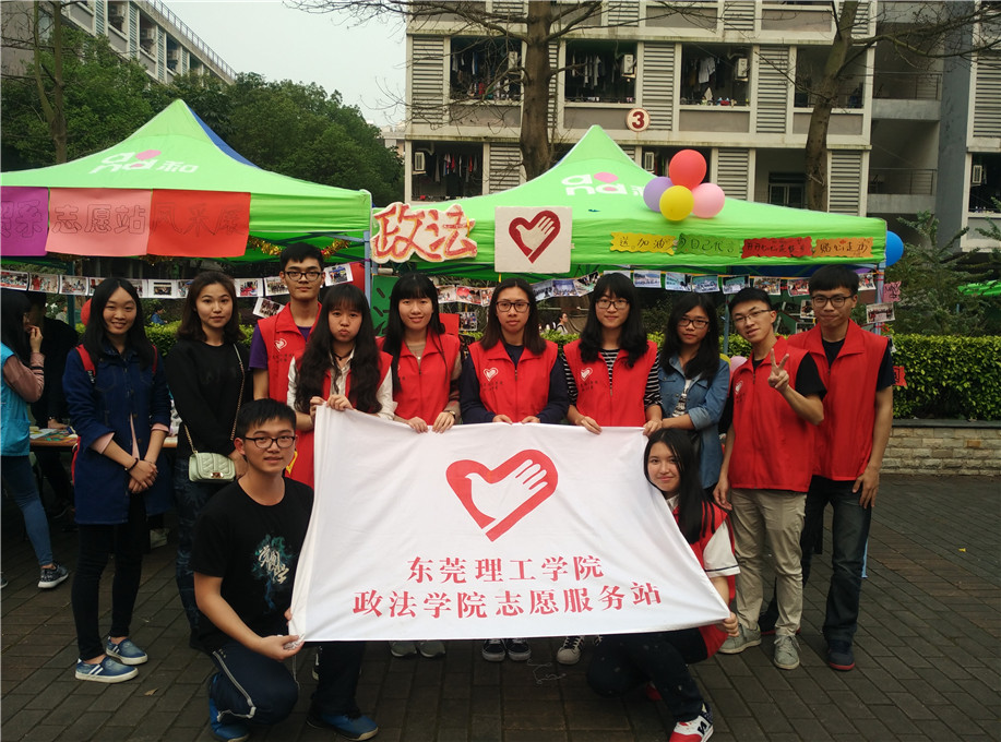 2016年3月31日14:00-20:30, 校志愿服务中心、12个院系志愿服务站和4支校级志愿服务队在松山湖校区的学生公寓广场举办了志愿服务风采展活动,政法学院志愿服务站和法律宣传志愿服务队也参与了本次展示。