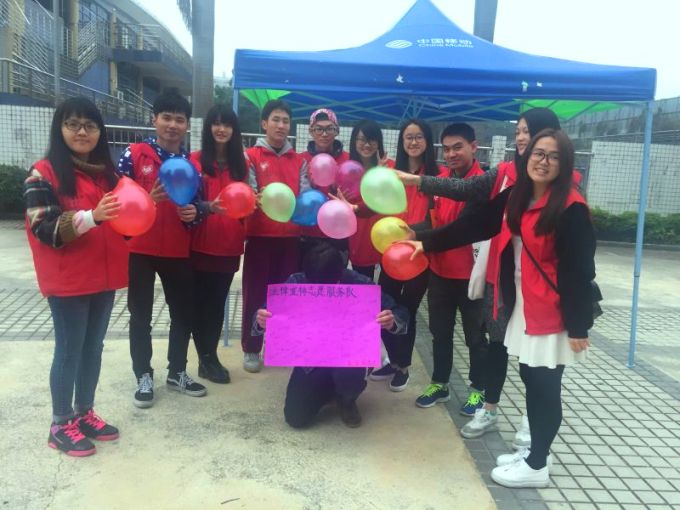 2016年3月16日下午,法宣队小干事在图书馆前为自己第一次策划的活动做准备。活动围绕《消费者权益保护法》展开,参与者不仅可以通过挤气球、摸法口授、趣味多米诺骨牌游戏获得有关消费者权益保护法的知识,同时也可以得到精美的礼品。