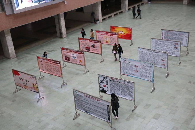 2015年12月4日星期五,是我国第二个全国宪法日,在我校的组织下,一个名为“纪念宪法日”的展板活动今日在教学楼4号楼大厅成功举行。