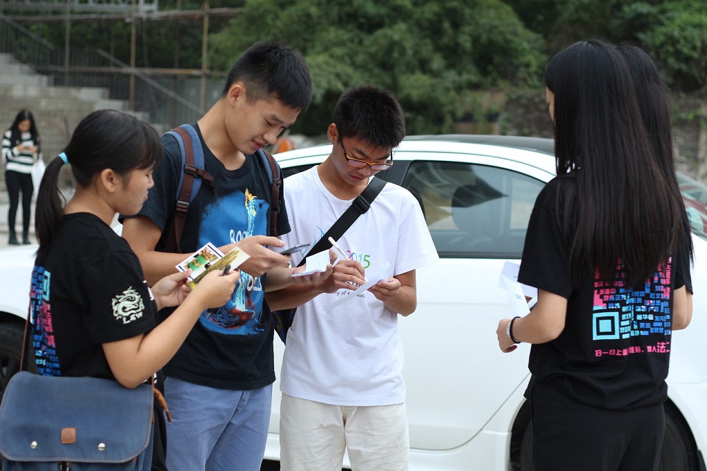 16:00,14法学2团支部的成员全员到位,搭好帐篷准备好活动用具,准备开展我们的团日活动。16:10分,同学们下课后陆陆续续从我们的活动场地经过。我们的成员热情地邀请路过的同学参与我们的团日活动,耐心地讲解活动细节:首先留下个人信息,并写下自己对于社会主义核心价值观的见解即能获赠精美明信片一张,还可以微笑留影,我们的成员会票选出最美微笑并赠送相应奖品。同学们非常积极地参与以及配合我们,从收回的问卷中我们获取了许多同学对于核心价值观的不同见解。此外,我们希望通过微笑传递温暖,所以我们设计了微笑留影的环节,同学们站在我们团支部的帐篷前,用快门留下自己的微笑。