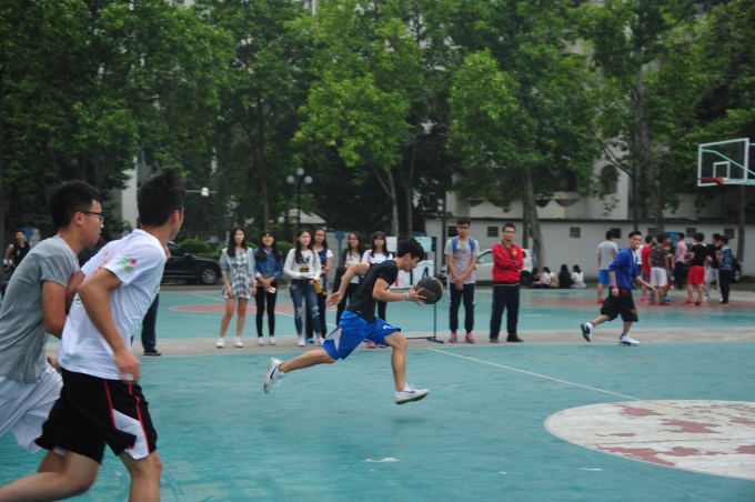 11月11日下午16时30分,政法学院学生篮球赛在莞城校区图书馆前篮球场举行。此次篮球赛是大一对阵大二,师弟对阵师兄可是相当有看头。