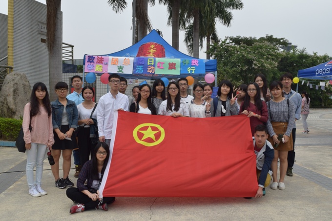 2015年11月12日中午12点整,政法学院团总支在莞城校区图书馆前的空地举行以“五星红旗伴我行”的团总支团日活动,并邀请莞工各位同学参与。