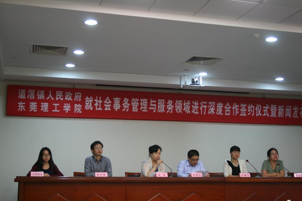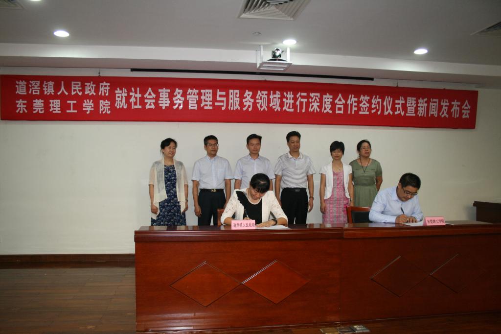 2015年10月26日下午,政法学院与道滘镇人民政府就社会事务管理领域进行深度合作签约仪式在道滘镇人民政府大楼会议室举行,道滘镇委副书记冯彬、镇委委员妇联主席刘转南、副镇长关雅方、镇政府相关职能机构负责人、道滘镇镇全体村居自治组织负责人,以及政法学院党政班子全体成员、部分教师代表和学生代表出席了签约仪式。签约仪式结束后,合作双方还举行了双方下一步拟共建的“地方基层治理综合研究和实践服务示范基地”揭牌仪式,道滘镇人民政府就此次合作还举行了专门新闻发布会。