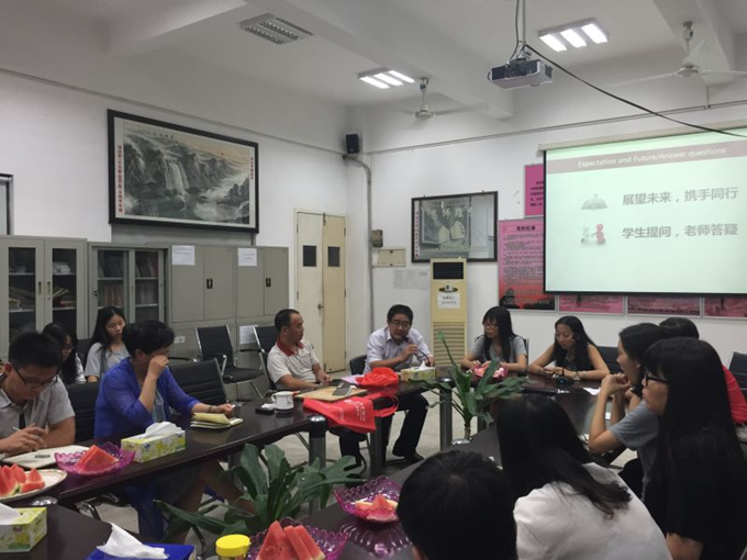 班会在两位班长的主持中拉开帷幕。首先是李益民老师对本次主题班会的举行目的做了明确的阐述,并与同学们一起分享西瓜,营造良好的活动氛围。接下的环节是同学们分享暑期实习与香港实习经历,其中欧阳婷婷和丘钰琳等多位同学与师生们讲述了她们的实习经历与体会,并表示自己在暑期实习中收获颇大,也得到了充分的锻炼,加深了对社会工作专业的了解。各位与会老师对同学们的成长纷纷表示欣慰,特别是成伟教授认为同学们在经过两年的专业学习及一个暑假的实习后,学习能力、语言表达能力、为人处世等方面都得到了很大的提高,并希望同学们能继续保持较大的工作激情走好社工这条路。此外,夏副院长也对社工班的同学给予了很大的肯定,并鼓励同学们多与我院其他专业的同学进行交流,把丰富的经验和优秀的精神传递给他人。