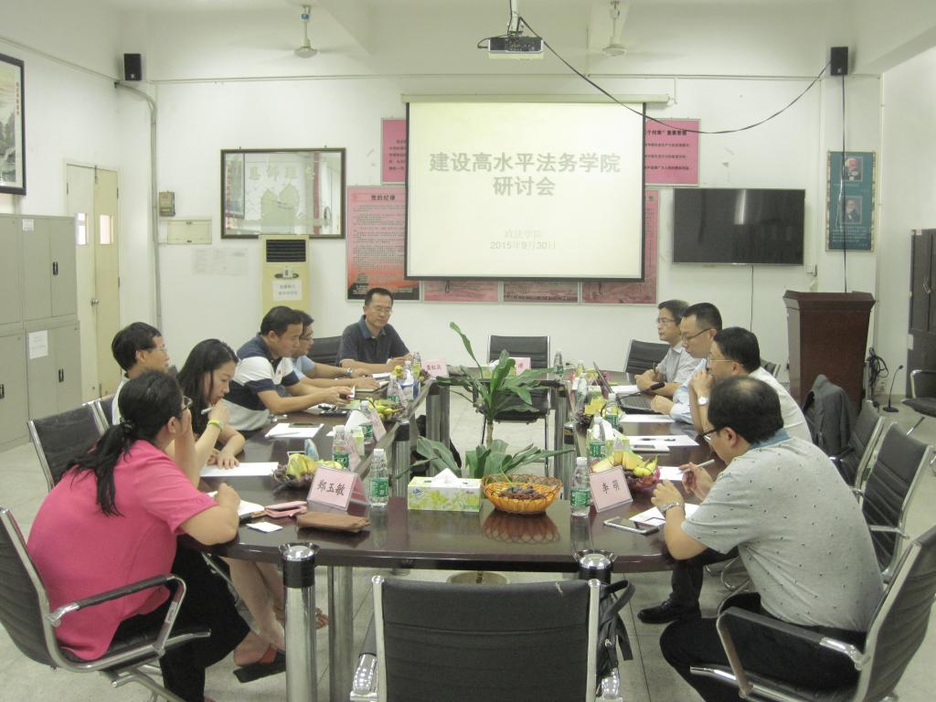 为了响应学校高水平建设的号召,政法学院于2015年9月30日在经管楼211会议室召开了如何建设高水平的法务学院研讨会。政法学院院长强昌文教授首先介绍了召开本次研讨会的目的,并抛砖引玉地勾勒了高水平学院的基本构成要素;3044AM永利集团副校长邹小平教授介绍了我校高水平建设的基本情况;来自东莞中级人民法院、东莞律师协会、深圳证券交易所、深圳坪山经济服务局、深圳市政府的五位校外专家各自结合工作实践和切身体会发表了有见地的看法。教务处副处长邹琼博士以及政法学院法学专业部分老师参加了本次研讨会。虽然是初次研讨会,但围绕着高水平的法务学院还是形成了几点共识:1、必须要在建设高水平理工科大学背景下来建设法务学院;2、必须要结合应用型的人才培养目标定位来建设法务学院;3、必须要物色人才并实行灵活聘用来建设特色的法务学院;4、必须要着眼于东莞乃至珠三角的经济和社会发展来建设法务学院。