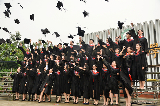 遵从往年的惯例,最后一张毕业照是抛起学士帽的留影,同学们在抛起学士帽的那一刻发出了愉快的笑声,这笑声随着他们掷出的学士帽一起飞扬在天际,仿佛是对崭新未来进行迎接的宣言,是对过去或温馨、或努力、或快乐的完美总结,母校带给他们的是迎接未来的知识,更是在老师传道授业之中的人生经验,为人准则;而他们自己在大学四年之中得到的,还有友谊,爱情,师生情……他们并没有彻底告别母校,不管在哪里,他们都是政法的儿女,都是莞工的儿女。