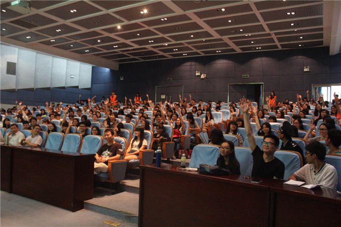 第二个环节为审讯模拟,首先是介绍案件背景,以视频方式呈现案发过程,事件起因是三名青年男性因钱财紧缺而产生非分之想,对一对年轻男女实施抢劫,并涉嫌故意伤人。紧接着,就是法庭演示,法庭演示由法庭调查、法庭辩论、案件判决三个部分组成。观众提问环节穿插到法庭辩论之后,提问问题与审讯环节有关,同学们为了获得精美礼品都积极参与,踊跃发言。接下来的判决环节,由审判长宣布结果:被告人被判于有期徒刑及给予被害人一定赔偿金。